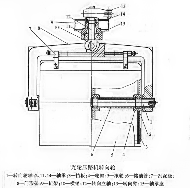 二輪二軸式和三輪二軸式光輪壓路機(jī)的轉(zhuǎn)向輪的機(jī)構(gòu)基本相同,并依靠門形和轉(zhuǎn)向立軸與機(jī)架連接。徐工生產(chǎn)的幾種機(jī)型的壓路機(jī)的轉(zhuǎn)向輪與懸架完全相同,也有其他一些產(chǎn)品使用的是三輪二軸式壓路機(jī)的懸架為框架式機(jī)構(gòu)。今天我徐工壓路機(jī)配件上就來為大家簡單介紹下光輪壓路機(jī)的轉(zhuǎn)向輪及懸架。 徐工光輪壓路機(jī)的轉(zhuǎn)向輪與懸架圖下圖所示,它由滾輪5,軸承2、11、14,門形架8和轉(zhuǎn)向立軸12等組成。轉(zhuǎn)向輪由輪圈和輻板焊接而成。為了便于轉(zhuǎn)向、減小轉(zhuǎn)向阻力矩,通常將轉(zhuǎn)向輪分為兩個(gè)萬千相同的滾輪,分別用軸承2支撐在轉(zhuǎn)向軸上。為了潤滑軸承,在輪軸上套裝有儲(chǔ)油管6,其內(nèi)注入潤滑脂(每年注一次)。輪內(nèi)可灌砂或水,以調(diào)節(jié)壓實(shí)質(zhì)量。